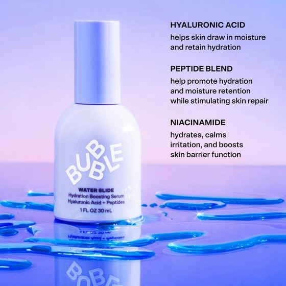 Bubble Skincare Water Slide Hydration Boosting Facial Serum, Hyaluronic Acid and Peptides, Everyday Care, All Skin Types 1 fl oz / 30ml