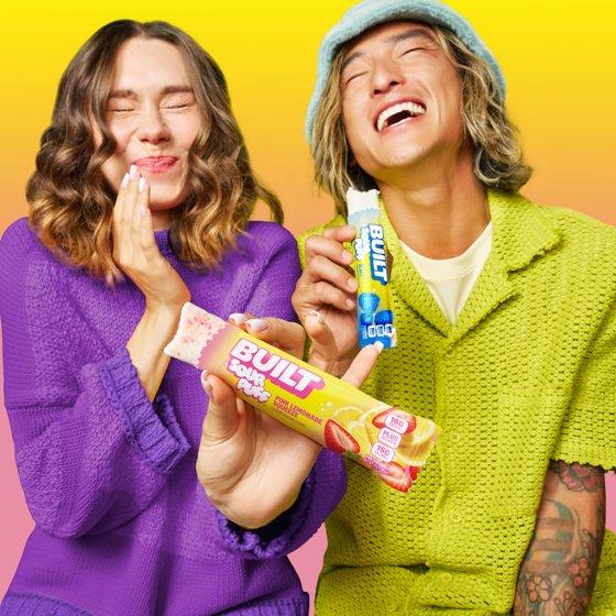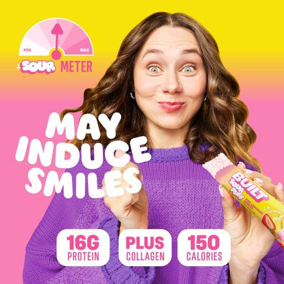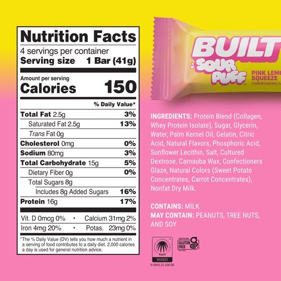BUILT Sour Puff Protein Bar, Pink Lemonade, 16g Protein, Collagen, 150 Calories, 4 Count Box, 1.45 oz Bars