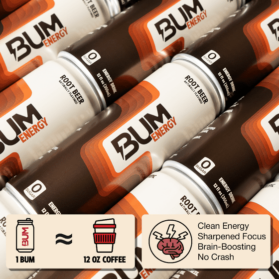 BUM Energy Root Beer Energy Drink, 112 mg Natural Caffeine, 12 fl oz Can