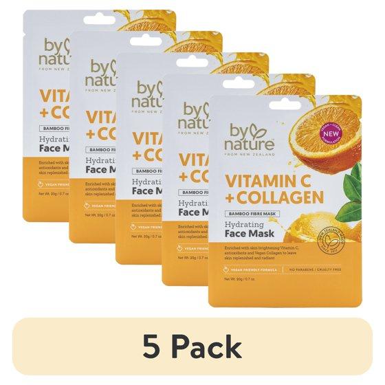 (5 pack) By Nature Skincare from New Zealand Vitamin C and Collagen Sheet Face Mask to Brighten and Hydrate Dull Skin