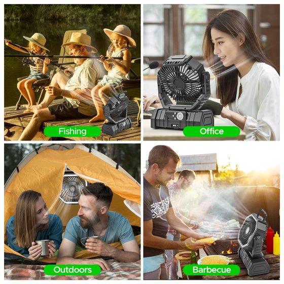 Camping Fan,20000mAh Rechargeable Battery Operated Outdoor Tent Fan with LED Light & Foldable Hook, 4 Speeds with 270° Rotate Pivot for Camping, Barbecue, kitchen, Fishing Construction Sites