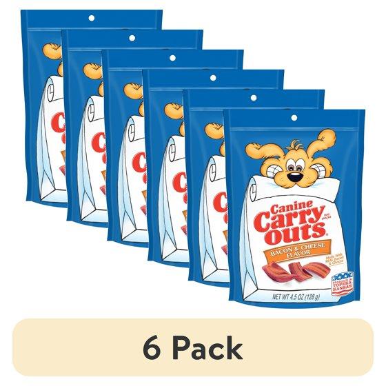 - Contains one (6) 4.5-ounce bag of Canine Carry Outs Bacon & Cheese Flavor dog treats
