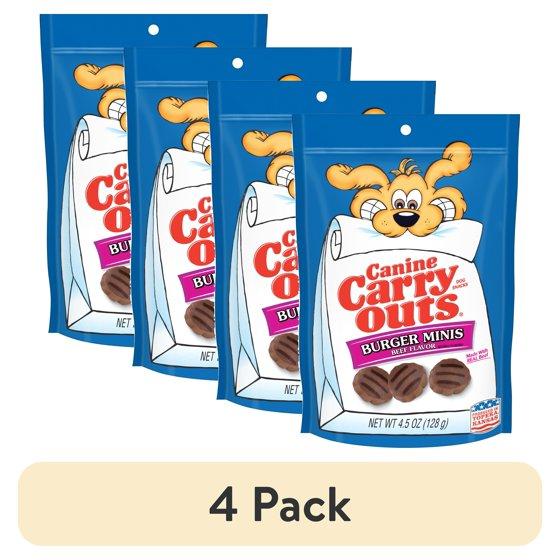 (4 pack) Canine Carry Outs Burger Minis Beef Flavor Dog Treats, 4.5oz Bag