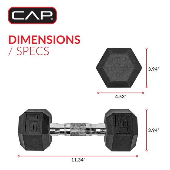 CAP Barbell, 15lb Rubber Hex Dumbbell, Single