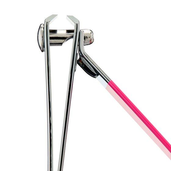 - Decorative pink lever adds a stylish accent