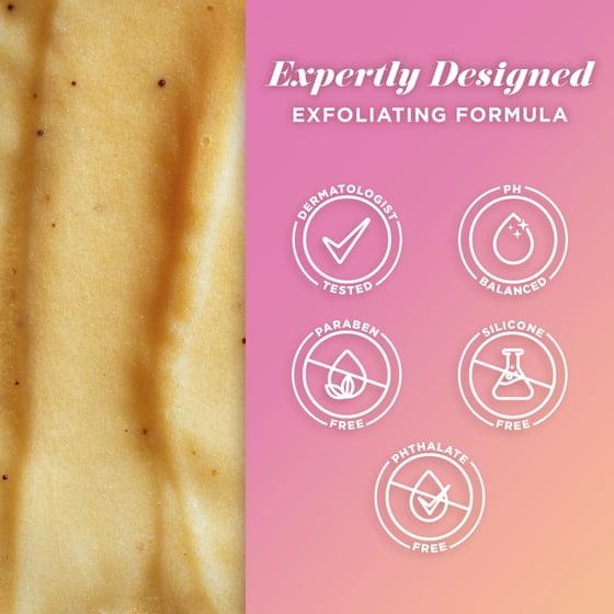 - Get silky, soft skin with an exfoliating formula, now infused with skincare favorites like hyaluronic acid, vitamin B3, and essential oils