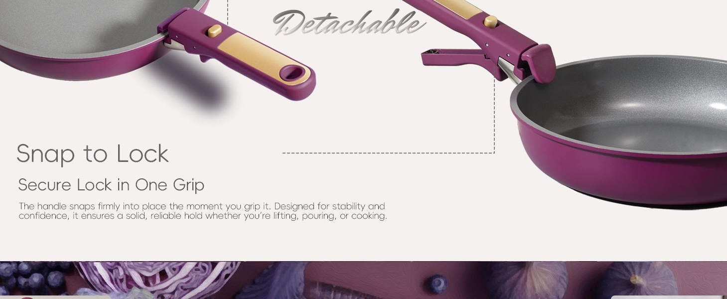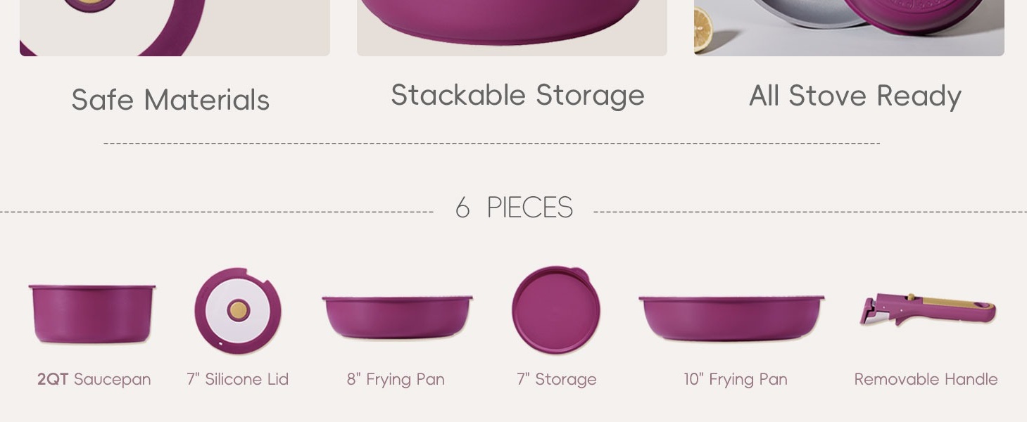 Carote Nonstick Detachable Pots and Pans Set, 6 Pieces Non Toxic Cookware Set with Induction, Oven/Dishwasher Safe, Easy for Storage, Magenta Purple