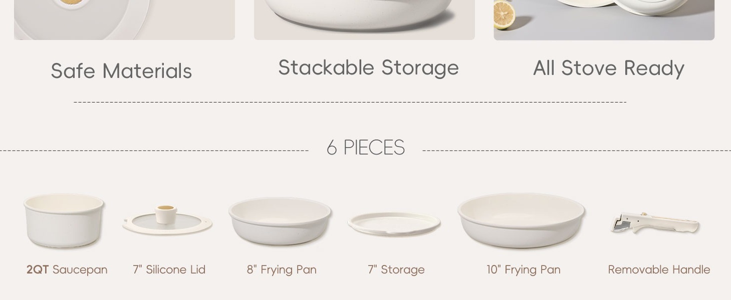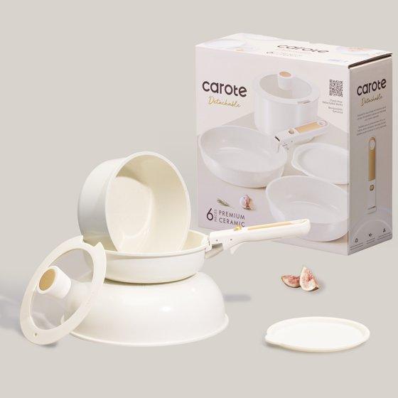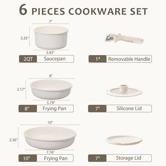 Carote Nonstick Detachable Pots and Pans Set, 6 Pieces Non Toxic Cookware Set with Induction, Oven/Dishwasher Safe, Easy for Storage, Granite White