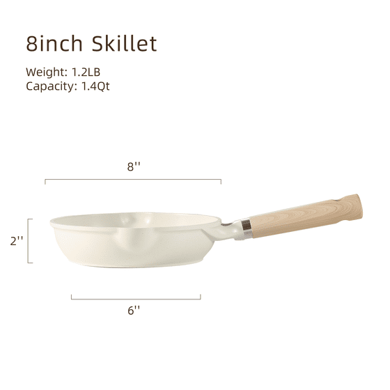 - SUPER NONSTICK -This skillet features a premium non-stick coating in cream white with speckles and a stylish granite look, making cooking and cleanup effortless. Food slides off easily, and less oil or butter is needed, promoting healthier cooking.