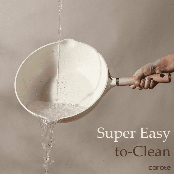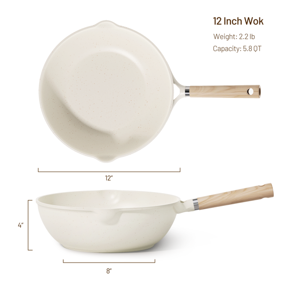 - SUPER NONSTICK -This wok features a premium non-stick coating in cream white with speckles and a stylish granite look, making cooking and cleanup effortless. Food slides off easily, and less oil or butter is needed, promoting healthier cooking.