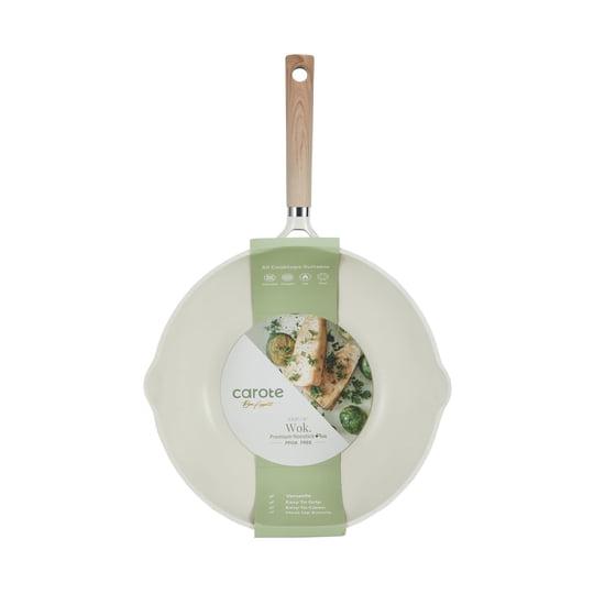 Carote Nonstick Wok with Induction 12" Non-Stick Saute Pan, All Stoves Compatible, Bon Appetit, White Granite, 5.8QT