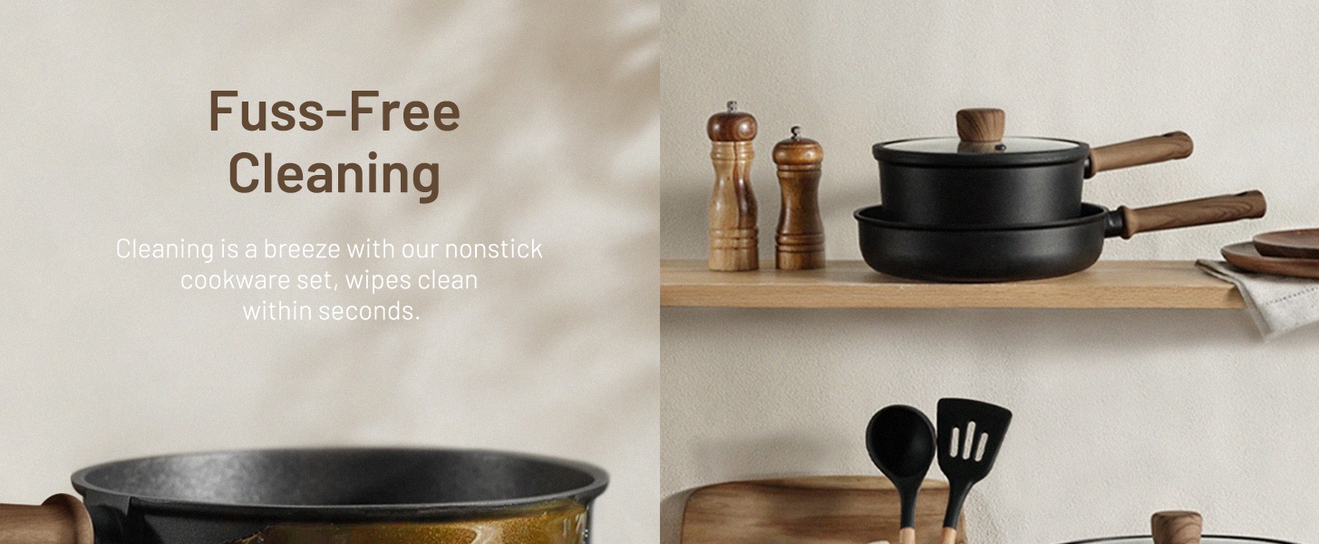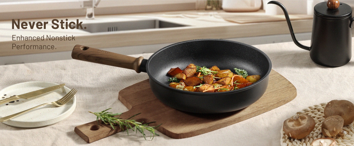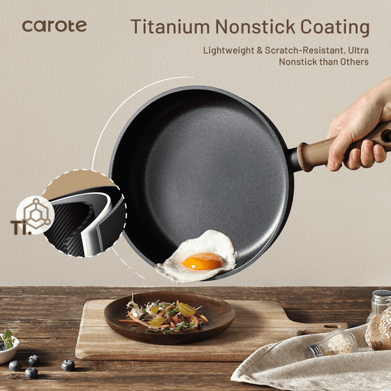- Nonstick Titanium Cookware: Nonstick titanium material and reinforced die-cast aluminum construction of the high-quality titanium pan extend the life of the cookware and withstand frequent use without compromising its performance.