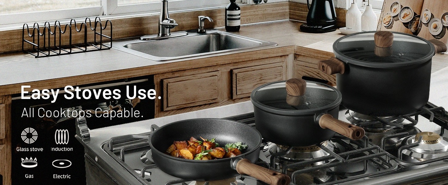 - Suitable For All Stoves: Heats up quickly and evenly with extended bottom design. High magnetic conductive stainless steel base allows our nonstick cookware to work on all cooktops, including induction.