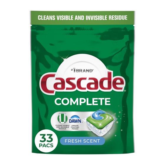 Cascade Complete Dishwasher Pods, Dishwasher Detergent, Dish Detergent Soap, Fresh, 33 Count