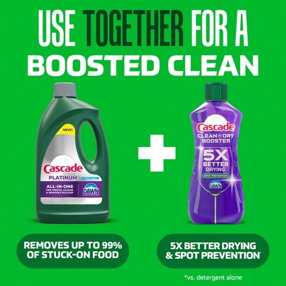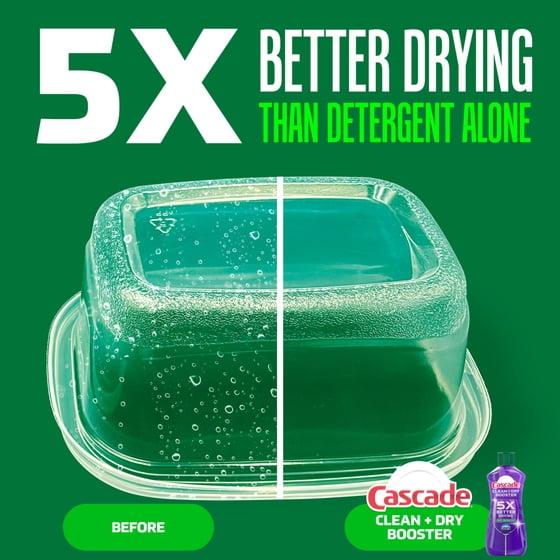 - 5X DRYING POWER: Cascade Clean & Dry Booster has 5x the drying power of detergent alone, preventing spots and water on dishes.