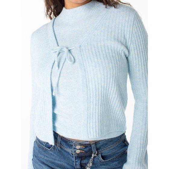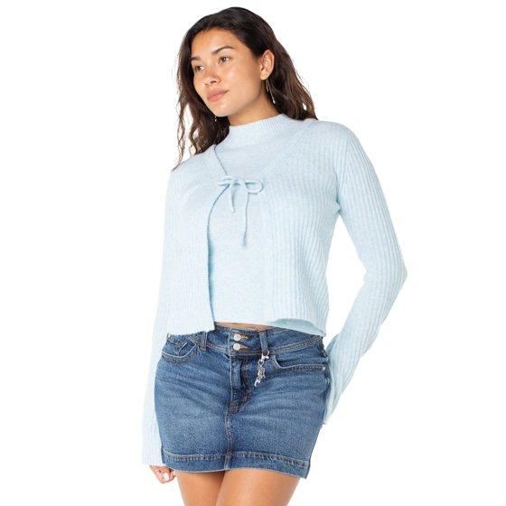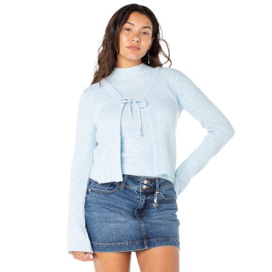 Celebrity Pink Women's 2 Piece Sweater Set Sleeveless Mockneck with Tie Front Cardigan, Sizes XS-XXXL