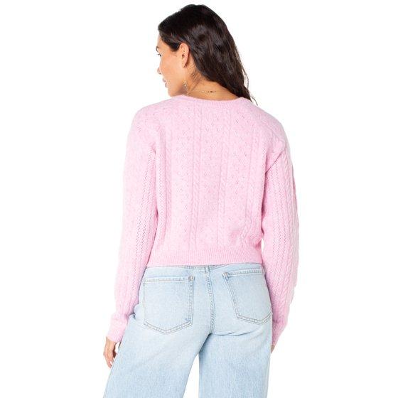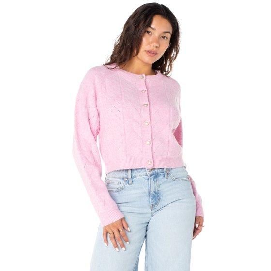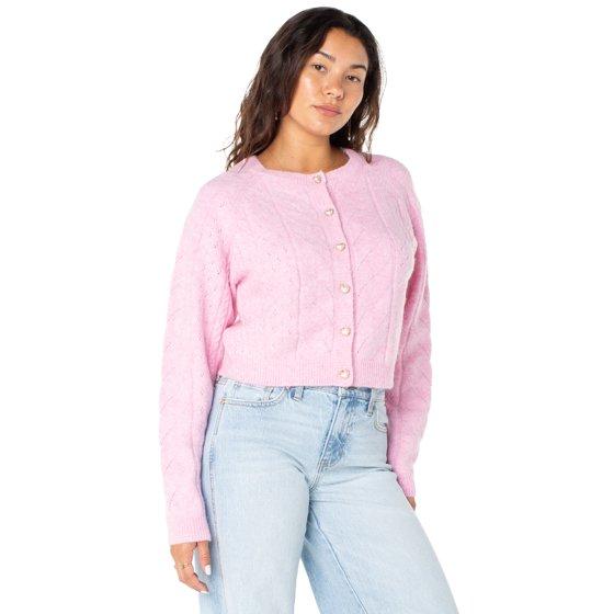 Celebrity Pink Women's and Women's Plus Cable Knit Crew Neck Cardigan, Sizes XS-4X