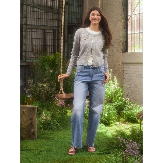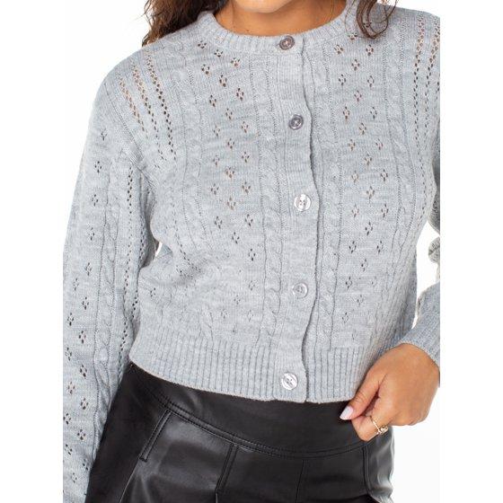 Celebrity Pink Women's Pointelle Crewneck Cardigan Sweater, Sizes XS-XXXL