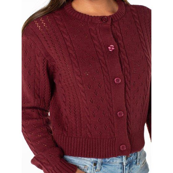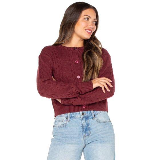 Celebrity Pink Women's Pointelle Crewneck Cardigan Sweater, Sizes XS-XXXL