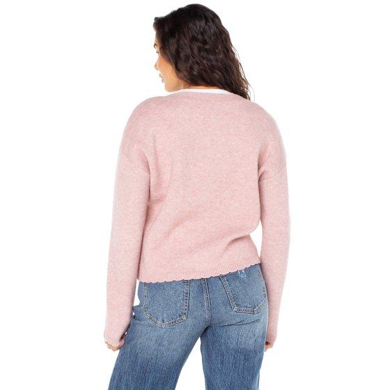 Celebrity Pink Women's Scalloped Hem Jewel Button Cardigan Sweater with Long Sleeves, Sizes XS-XXXL