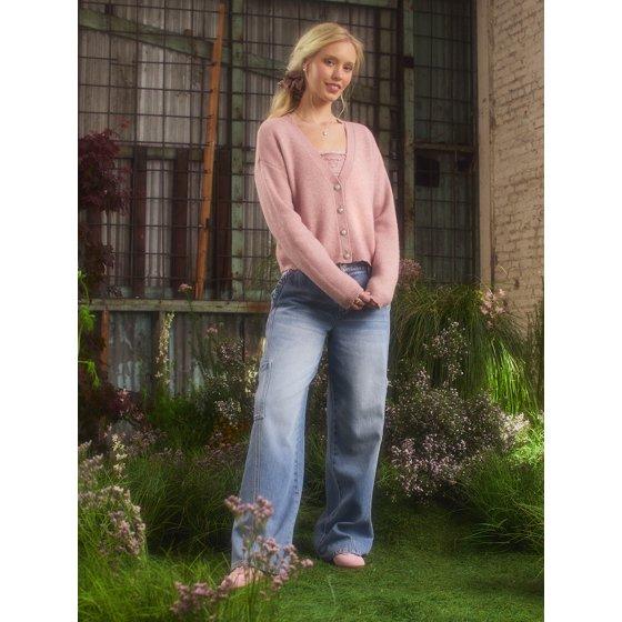 - Women’s Scalloped Hem Jewel Button Cardigan Sweater from Celebrity Pink