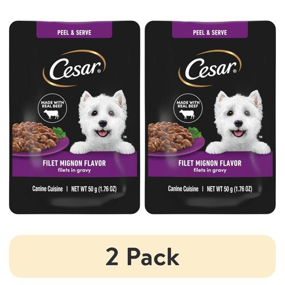 - Cesar Filet Mignon Flavor Pouches are made with real beef so your dog gets a flavor they know and love