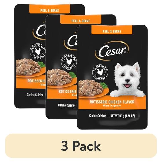 (3 pack) Cesar Filets in Gravy Rotisserie Chicken Flavor Wet Dog Food, 1.76-oz Mini-Pouches