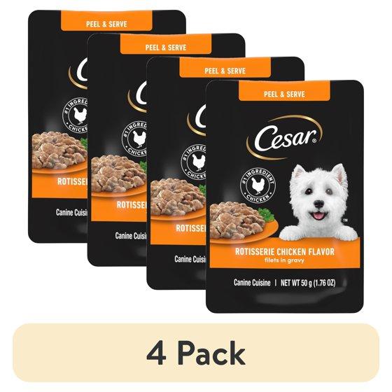 (4 pack) Cesar Filets in Gravy Rotisserie Chicken Flavor Wet Dog Food, 1.76-oz Mini-Pouches