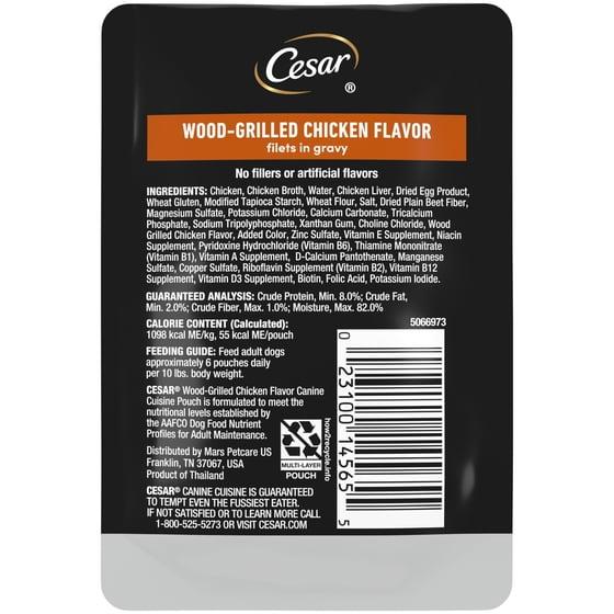 - Cesar Wood-Grilled Chicken Flavor Pouches are made with real chicken as the #1 ingredient so your dog gets a flavor they know and love