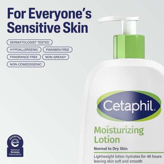 Cetaphil Avocado Oil Moisturizing Lotion for Dry to Normal Skin, Unscented, Find skincare that works for you with CETAPHIL Moisturizing Lotion, a lightweight and fast-absorbing moisturizer designed to comfort and hydrate all skin types. The unique formulation of skin essential vitamin E and 6 moisturizing ingredients provides instant lightweight hydration that leaves skin soft and smooth. And now formulated with a new blend of key ingredients: hydrating glycerin, panthenol (vitamin B5) to hydrate, soothe and preserve the skin barrier, and niacinamide (vitamin B3) to help smooth skin's texture and retain skin's moisture barrier. Water binding agents deeply replenish the skin's moisture and prevent moisture loss, providing long-lasting 48-hour hydration that completely restores the skin's moisture barrier in one week, helping to defend against 5 signs of skin sensitivity. Fragrance-free, lanolin-free, paraben-free, and sulfate-free, this gentle lotion is clinically tested for even the most sensitive skin. Treat your skin right thanks to the gentle, non-comedogenic formula, providing instant, every day moisturizing care that leaves skin immediately feeling soft, smooth, and replenished.