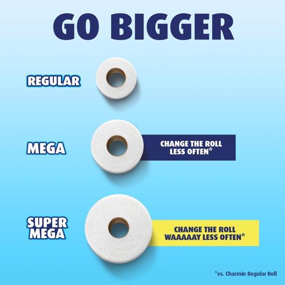 - 1 Charmin Mega Roll = 4 Regular Rolls based on number of sheets in Charmin Regular Roll bath tissue