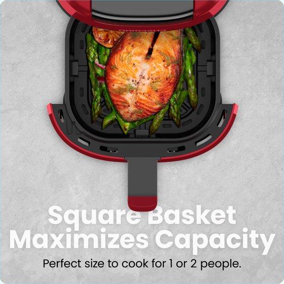 - SUPREME SPACE-SAVER: The square basket maximizes its 2-quart capacity. Housed in a sleek, narrow design to keep its countertop footprint small, this airfryer eliminates clutter and extraneous appliances.