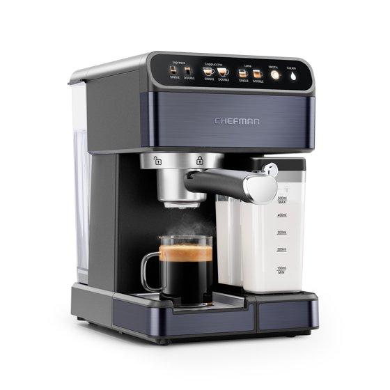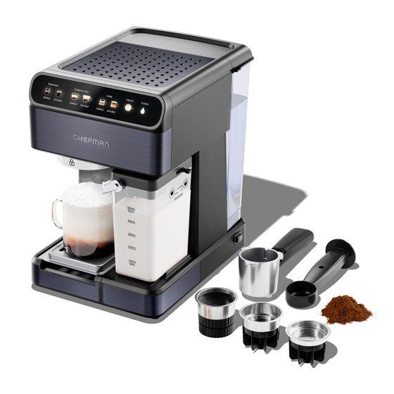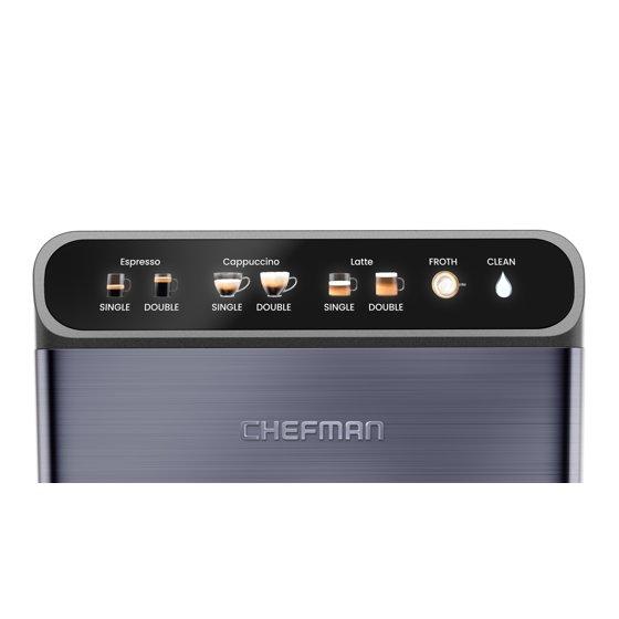 Chefman 6-in-1 Espresso Machine with Built-In Milk Frother, 15-BAR Pump, Color Display, One-Touch Single or Double Shot Espresso for Cappuccinos and Lattes, XL 1.8-L Water Reservoir, Black Stainless