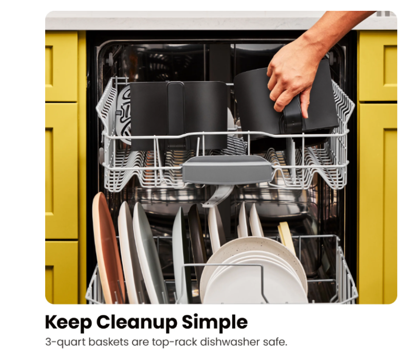 - EASY CLEANUP: The removable nonstick airfryer baskets are top-rack dishwasher safe and easy to clean after every use.