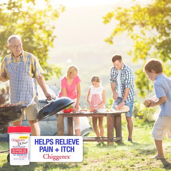 - Keep Chiggerex as an after bite treatment in your medicine cabinet, glove compartment, camping bags and backpacks for pain relief + itch relief from chiggers (red bugs), mosquito bites, ticks, no-see-ums, biting flies, gnats, sand fleas, bee stings, jellyfish stings and more!