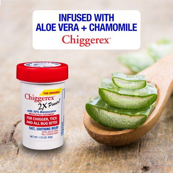 - Chiggerex 2X Power First Aid Medicated Ointment for Chiggers, Ticks and Bug Bite Relief with Aloe Vera & Chamomile, 1.75 Oz