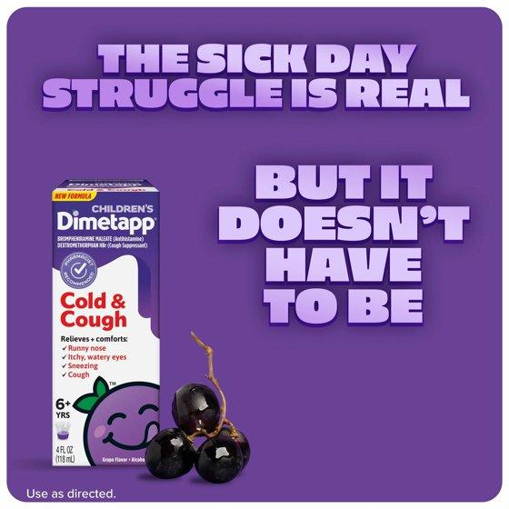 - FAST-ACTING, PROVEN RELIEF: The sick day struggle is real but it doesn’t have to be. Children's Dimetapp Cold & Cough delivers soothing relief from stubborn cold & cough symptoms quickly so your child can start feeling better, faster