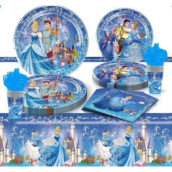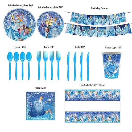 - This Cinderella party supplies set includes everything you need to entertain 10 guests, including Cinderella birthday decorations and Cinderella themed birthday party tableware, such as Cinderella birthday banner, Cinderella party plates, Cinderella tablecloth.