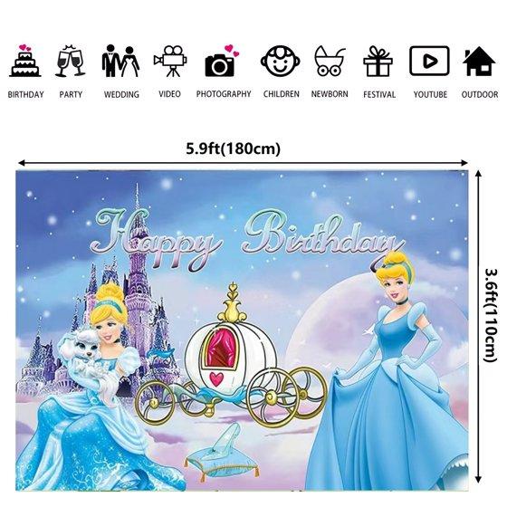Cinderella Cartoon Theme Birthday Flag Background Banner Children's Party Decoration supplies Photography Photo Prop ,70.8x43.3inch.