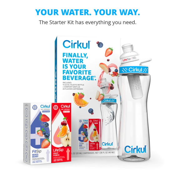 - COMPLETE STARTER KIT: Innovative water bottle and cartridge system that makes drinking water more delicious, fun, and personalized.