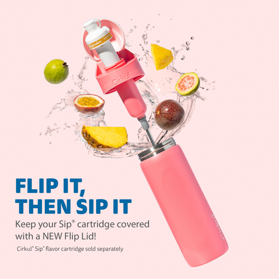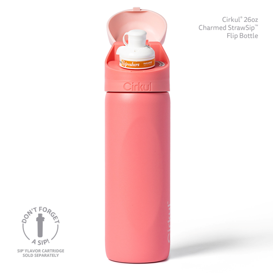 Cirkul 26oz StrawSip Flip Water Bottle, Stainless Steel, Double Wall Insulated, Charmed (Coral)