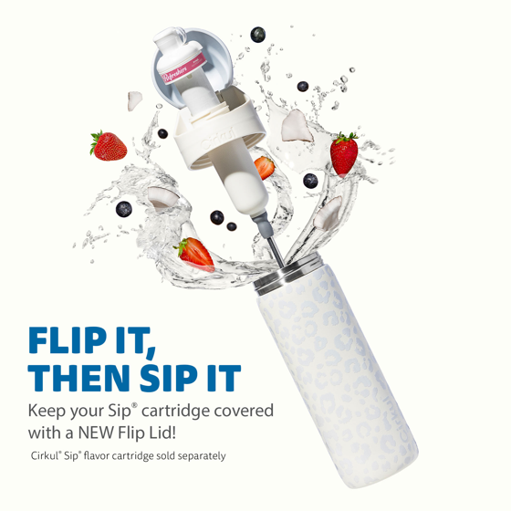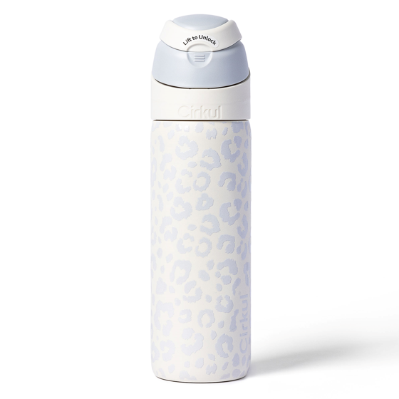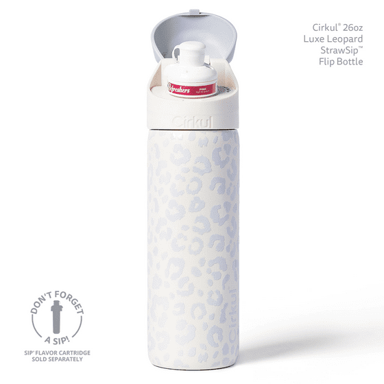 Cirkul 26oz StrawSip Flip Water Bottle, Stainless Steel, Double Wall Insulated, Luxe Leopard (White Leopard)