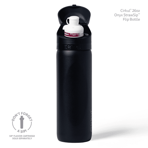 Cirkul 26oz StrawSip Flip Water Bottle, Stainless Steel, Double Wall Insulated, Onyx (Black)