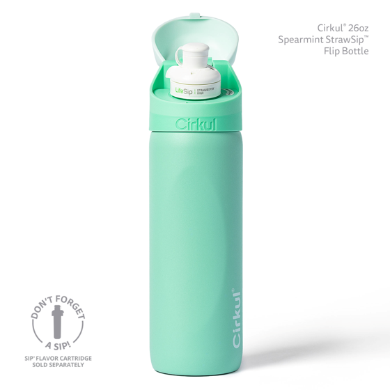 Cirkul 26oz StrawSip Flip Water Bottle, Stainless Steel, Double Wall Insulated, Onyx (Black)