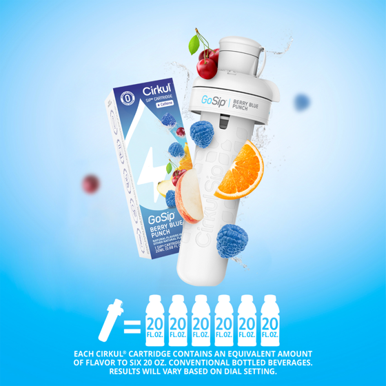 - Each Cirkul cartridge contains an equivalent amount of flavor to six 20oz conventional bottled beverages. Results will vary based on dial setting.
