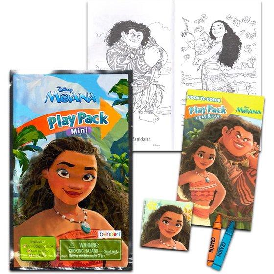 - This Moana party supplies set features 24 mini Grab n Go Play Packs which each include a miniature coloring book, stickers, and coloring utensils.