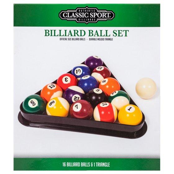 Classic Sport Official Size Billiard Pool Set with Cue Ball and Triangle Rack - Standard Resin Balls - 5.4 lb