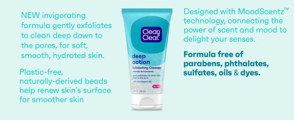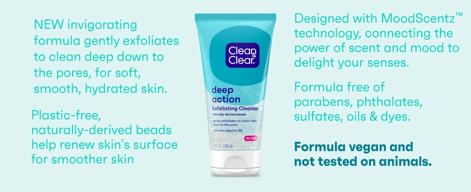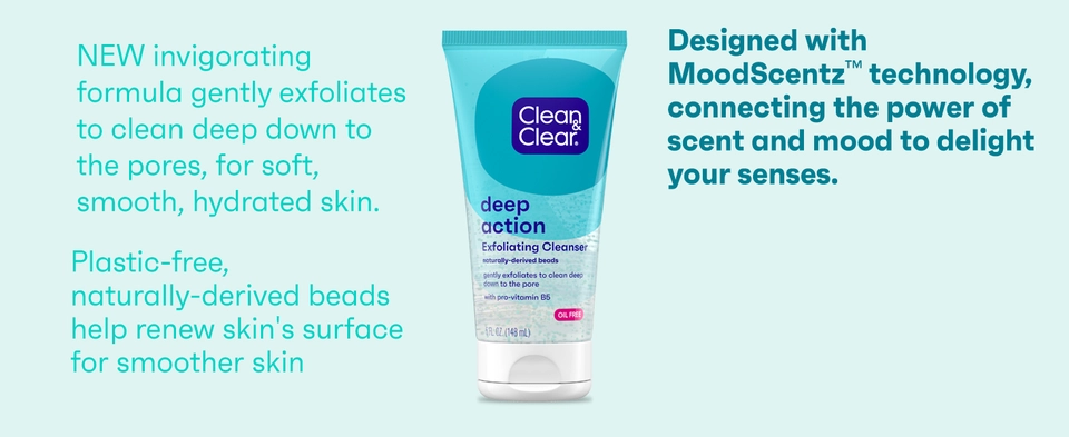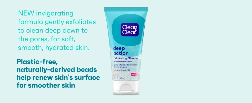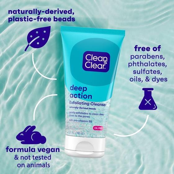 - Clean & Clear Deep Action Exfoliating Facial Cleanser with Pro-Vitamin B5 for soft skin