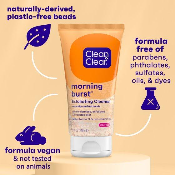 - Clean & Clear Oil-Free Morning Burst Exfoliating Facial Cleanser with Vitamin C & Pro-Vitamin B5