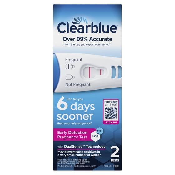 - DUALSENSE(TM) TECHNOLOGY: Early Detection Pregnancy Test is the first Clearblue test with DualSense(TM) Technology, which may help prevent false positives in the very small number of non-pregnant women who may have low levels of hCG in their urine